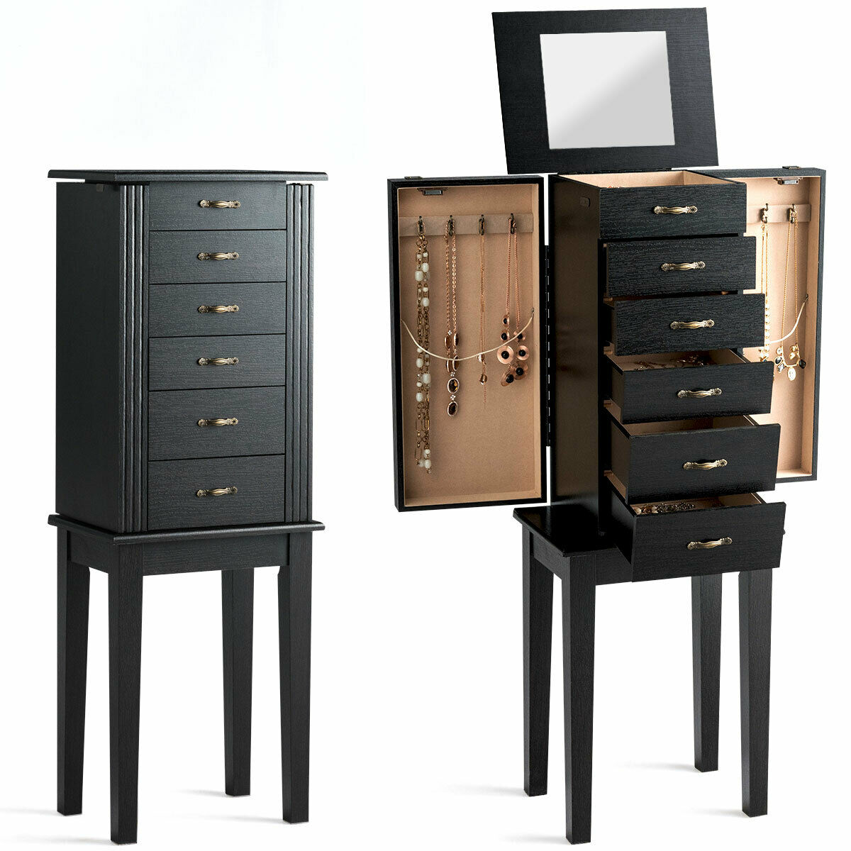 40 out of 5 stars 103. Giantex standing jewelry armoire cabinet storage chest with 7 drawers 2 swing doors 12 necklace hooks makeup mirror and top divided storage organizer large standing jewelry armoire.
