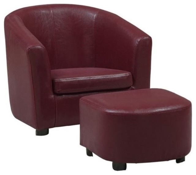 Faux leather accent chairs come in several practical silhouettes. Wooden faux leather chairs. Lounge chairs paired with an ottoman offer optimum comfort.