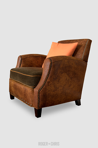Irving Leather Armchair Bronze Nailheads Polyester Wrapped Cushions Stetson Chestnut