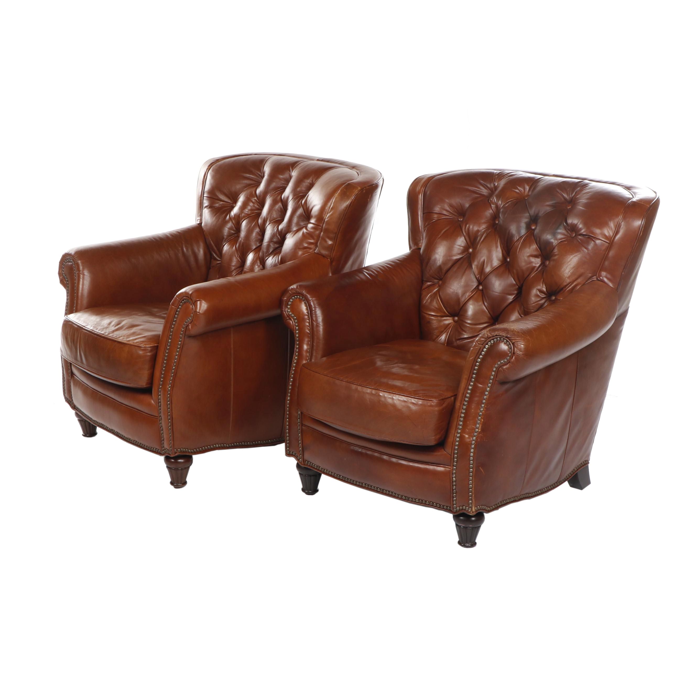 Walter E Smithe Connolly Button Tufted Tan Leather Armchairs Contemporary
