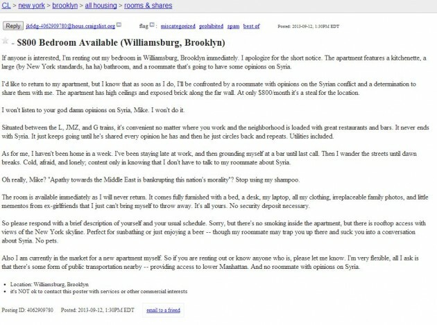 Craigslist Finally Has A Roommate Ad That Doesn T Suck